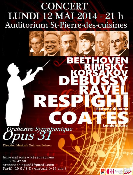Sous la direction de Guilhem Boisson, Opus 31 présentera le 12 mai prochain, à l’auditorium Saint-Pierre des Cuisines, un programme de pièces symphoniques très variées, de Beethoven à Johann Strauss fils, en passant par Rimsky-Korsakov, Sibelius, Debussy, Respighi, Ravel et Coates.
