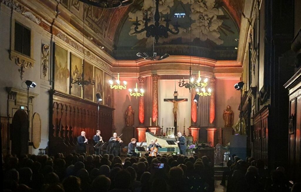 Présenté par Jean-Marc Andrieu lui-même, le Concerto en mi mineur pour flûte à bec, violon, hautbois, basson et basse continue, opus 37 n°6 de Joseph Bodin de Boismortier, un compositeur encore peu diffusé ouvre ce programme. Ses trois mouvements alternent les affects. A la suite de la danse du premier et à la douceur du deuxième, succède le troisième volet qui évoque une discussion virtuose entre les six instruments. C’est au bassoniste Nicolas André d’introduire la belle vitalité du plus célèbre des compositeurs de la soirée, Antonio Vivaldi, avec son Concerto en sol mineur pour flûte à bec, hautbois, basson, violon et basse continue, RV 105. Comme on pouvait s’y attendre le basson est ici en vedette avec un déferlement virtuose de l’instrument pour lequel le prêtre roux a composé le plus grand nombre de concertos (après le violon tout de même !). Le touchant duo avec la flûte constitue un moment musical particulièrement significatif de cette belle œuvre. Le retour vers Boismortier met en évidence l’art du violoncelle avec son Concerto en ré majeur avec cordes et basse continue, le tout premier composé en France pour cet instrument, dans une transcription de Jean-Marc Andrieu pour les instruments présents. Etienne Mangot, expert en la matière, en commente le déroulement et en souligne la séduisante éloquence.
