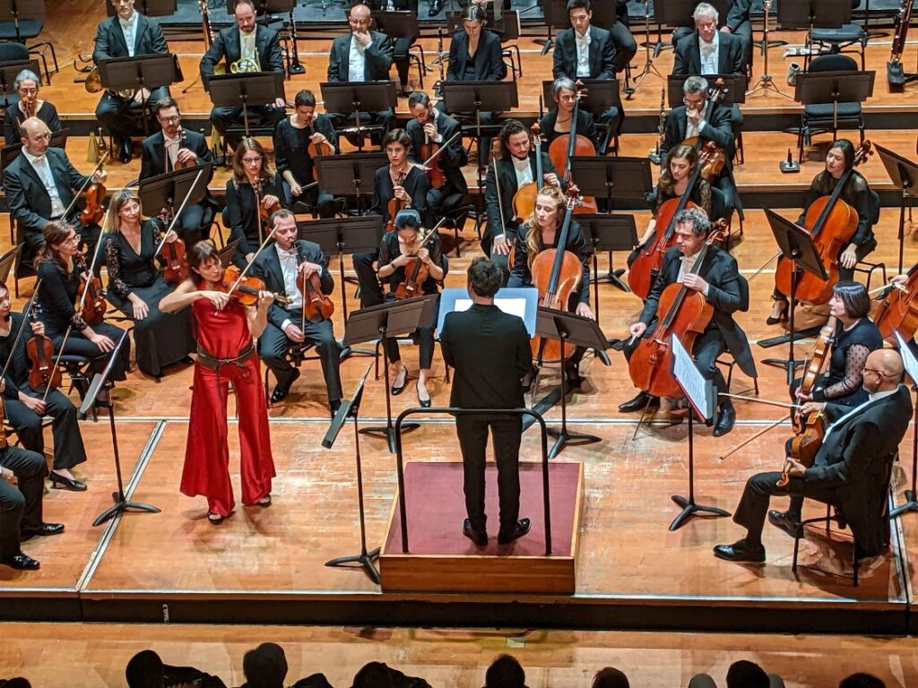 Ce 21 janvier, elle aborde l’Allegro moderato du Concerto n° 2 de Prokofiev comme on se livre à de touchantes confidences, d’une profonde intériorité. Les premières mesures a cappella du violon, d’une impressionnante pureté sonore, suscitent immédiatement l’émotion. Les alternances d’exaltation et de lyrisme animent tout l’Allegro moderato initial. Le jeu de Viktoria Mullova s’appuie sur le legato subtil de son phrasé. Sous son archet, l’Andante assai exprime une authentique douleur qui va de la tendresse au murmure dans une série d’échanges mystérieux entre violon et orchestre. Le final, Allegro ben marcato, retrouve le Prokofiev mordant et acéré. Le rythme, sorte de valse sardonique, est scandé par une grosse caisse inquiétante et même des castagnettes, sorte de clin d’œil inattendu à la ville de création de ce concerto, Madrid ! Tout au long de cette exécution, on admire le bel équilibre sonore que le chef établit entre le violon et l’orchestre. Jamais les tutti ne submergent les interventions stratégiques de la soliste.