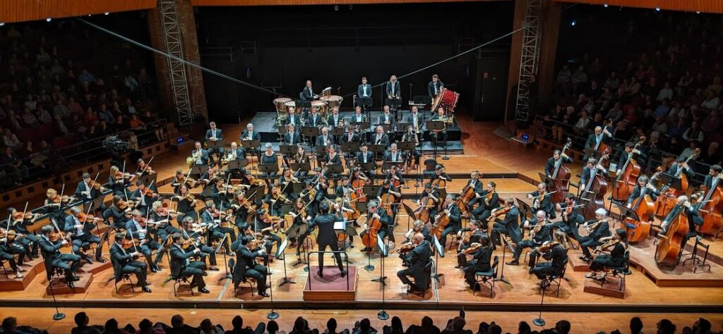La seconde partie de la soirée est consacrée à la célébrissime Symphonie n° 9, dite « Du Nouveau Monde », d’Antonin Dvořák. Ses quatre mouvements, qui s’inspirent du poème épique de Henry Longfellow, « Le chant de Hiawatha », développent des atmosphères évocatrices contrastées. Passée l’entrée en matière mystérieuse, Aziz Shokhakimov déchaîne dans le premier volet d’explosives tempêtes. Les contrastes exacerbés, le recours fréquent au rubato animent d’ailleurs l’ensemble de la symphonie. Le pupitre des cors confère un dynamisme chaleureux au thème récurrent initié dans ce premier mouvement. Le deuxième volet Largo revêt une tendresse particulière grâce au splendide solo de cor anglais, tout imprégné d’une profonde nostalgie. Le Scherzo – Molto vivace illustre à son tour un autre épisode du « Chant de Hiawatha », celui de la « Fête dans la forêt » dont le cœur reprend le motif d’une danse d’Europe centrale. Dans l’élan final de l’Allegro con fuoco, le chef déclenche un galop effréné. Apothéose impressionnante, tout feu tout flamme ! La fusion des thèmes qui essaiment toute la symphonie conclut la coda avec panache. Tous les musiciens solistes sont à féliciter, notamment Gabrielle Zaneboni au cor anglais, Chi Yuen Cheng au hautbois, Sandrine Tilly à la flûte, Hervé Lupano au cor, David Minetti à la clarinette, Guillaume Brun au basson, René-Gilles Rousselot à la trompette, David Locqueneux au trombone et Jean-Sébastien Borsarello aux timbales, sans oublier Kristi Gjezi, particulièrement efficace au poste stratégique de violon super-soliste (la liste est évidemment non exhaustive !). L’ovation recueillie par cette prestation résulte aussi bien de l’appréciation du public pour la qualité générale de notre bel orchestre que de la popularité d’une œuvre chère au cœur et à la mémoire.