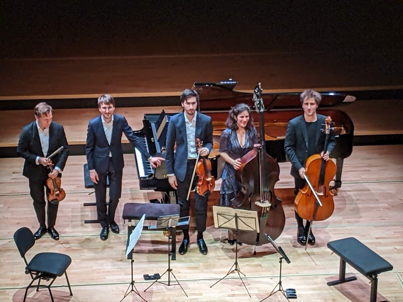 Ce soir-là, Renaud Capuçon est entouré de l’altiste Paul Zientara, du violoncelliste Maxime Quennesson, de la contrebassiste Lorraine Campet et du pianiste Guillaume Bellom. La cohésion, la ferveur du jeu commun, les richesses sonores de l’ensemble frappent dès les premières notes.