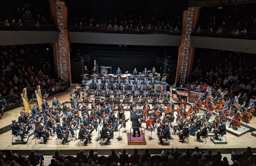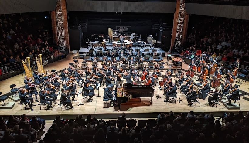 Tugan Sokhiev, qui a été le directeur musical de l’Orchestre national du Capitole de 2008 à 2022 est acclamé dès son entrée sur la scène de la Halle aux Grains. Il dirige avec l’intensité qu’on lui connait bien ce bel Orchestre Philharmonique dans un programme musical original et varié.