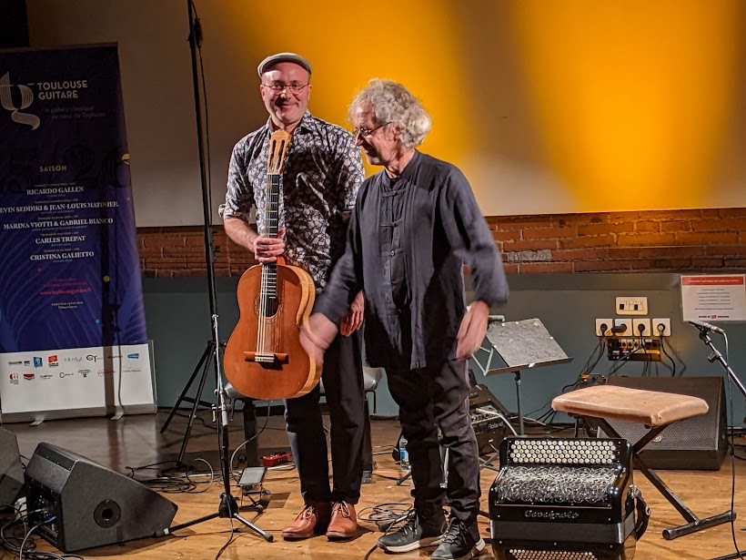 Le 21novembre dernier, salle du Sénéchal, Toulouse Guitare invitait Kevin Seddiki, guitare et Jean-Louis Matinier, accordéon, pour une rencontre musicale largement hors norme. Ces deux complices ont immergé l’ensemble du public dans leur monde d’improvisation qui mêle musique classique, chanson et jazz.