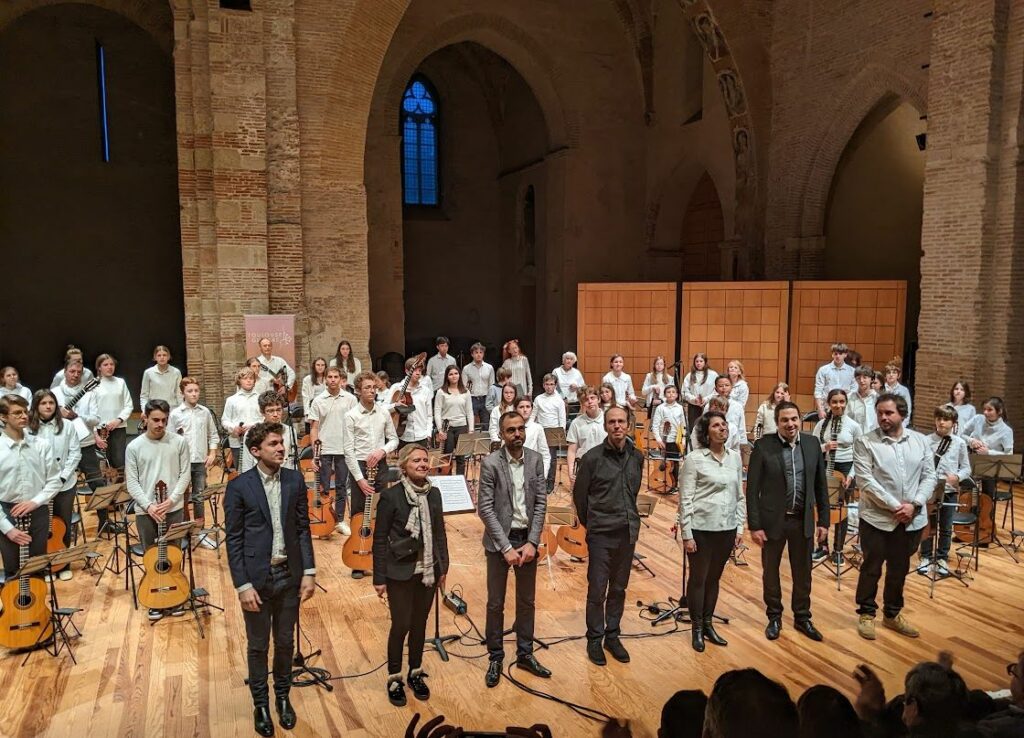On connait bien maintenant la tradition établie par Thibaut Garcia qui consiste à ouvrir chaque concerts de la saison qu’il a fondée avec l’intervention d’un ou d’une jeune guitariste en formation. Ce dimanche, c’est un véritable orchestre d’une soixantaine de jeunes musiciens qui envahit le plateau de l’auditorium. Toulouse Guitare a décidé de s’associer avec l’A.R.P.G. (Association Régionale des Professeurs de Guitare) pour offrir à ses jeunes adhérents l’occasion de rencontrer un public sensibilisé. Précisons que cette association, créée en 2012, regroupe et fédère des élèves et des professeurs de différentes écoles de musique de la région.