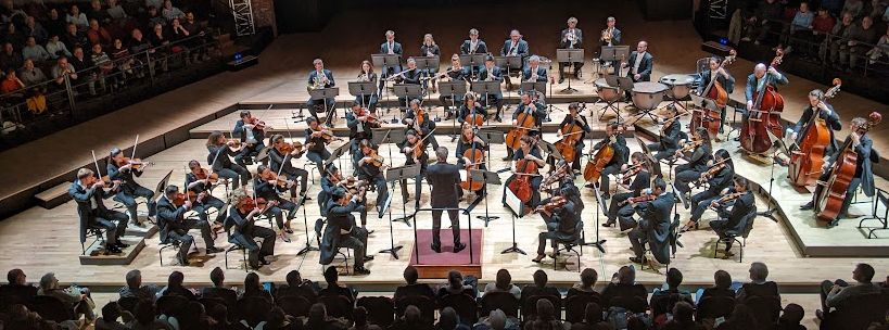 Dès l’installation des musiciens sur le plateau, on observe un petit changement dans la disposition des instruments à cordes. Le pupitre des seconds violons et celui des altos ont permuté, opposant « géographiquement » les premiers et les seconds violons et favorisant ainsi les effets d’écho.