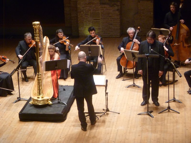 La dernière pièce inscrite au programme est également la plus « consistante ». D’André Caplet, cet ami fidèle de Claude Debussy, l’Etude symphonique d’après Le Masque de la Mort rouge illustre magnifiquement l’étonnant conte fantastique éponyme d’Edgar Allan Poe. Composée en 1908 pour harpe chromatique et orchestre à cordes, la partition sera transcrite pour harpe et quatuor à cordes en 1923 par Caplet lui-même. C’est la version originale de 1908 qui est habilement présentée ce 14 février. La lecture du conte original d’Edgar Poe, dans sa belle traduction de Charles Baudelaire, est assurée avec finesse et naturel par Pascal Papini, acteur, metteur en scène et actuellement responsable pédagogique du département théâtre du Conservatoire de Toulouse. Le déroulement de ce conte terrible est ainsi commenté musicalement par cette partition pleine d’audaces d’écriture.