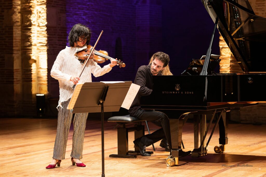 En ce soir du 17 novembre 2022, deux artistes doivent communier, s’écouter, se compléter, dialoguer et s’accompagner sur le plateau de Saint Pierre des Cuisines. L’exercice est beaucoup plus que musical. Il est question ici de respirations, de regards. Ce sont la violoniste Sayaka Shoji, première japonaise à remporter le prestigieux concours Paganini, et le pianiste natif de la Ville rose, Adam Laloum, maintes fois acclamé sous tous les cieux toulousains. Si l’on peut reconnaitre, apprécier voire être impressionné par la virtuosité et le sens profond de la dynamique ainsi que le sens musical de cette musicienne venue du Pays du Soleil levant, force est aussi de constater l’absence chez elle « d’empathie musicale » pour son alter ego. Le dialogue semble lointain même si la mesure tombe juste. Le trait, très technique, paraît souvent étranger au discours. Devant son piano, Adam Laloum est tout le contraire. Souple, aérien, d’une légèreté de toucher voluptueuse, observant avec une attention que l’on imagine emplie de jubilation musicale sa partenaire, nous donnant à entendre un son d’un velours rare et d’une rondeur vertigineuse. C’est lui qui nous fait pénétrer l’âme romantique de ces sonates. Et tout cela avec un naturel, une élégance de la phrase, une générosité et une virtuosité qui nous comblent de bonheur. C’est certainement pour l’entendre à nouveau que le public a réclamé un bis. Ce sera un extrait de la Romance n° 2 pour violon et piano de Robert Schumann. Comme un moment de joie qui s’éternise…