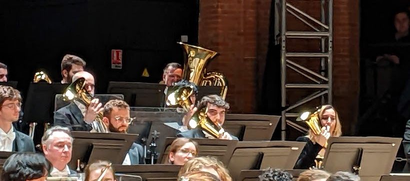 Devant une salle bien remplie, l’orchestre qui occupe le plateau de la Halle aux Grains se compose à la fois de musiciens titulaires mais également d’une quarantaine d’élèves issus des établissements toulousains d’enseignement : le Conservatoire à Rayonnement Régional et l’IsdaT (Institut supérieur des arts et du design de Toulouse).