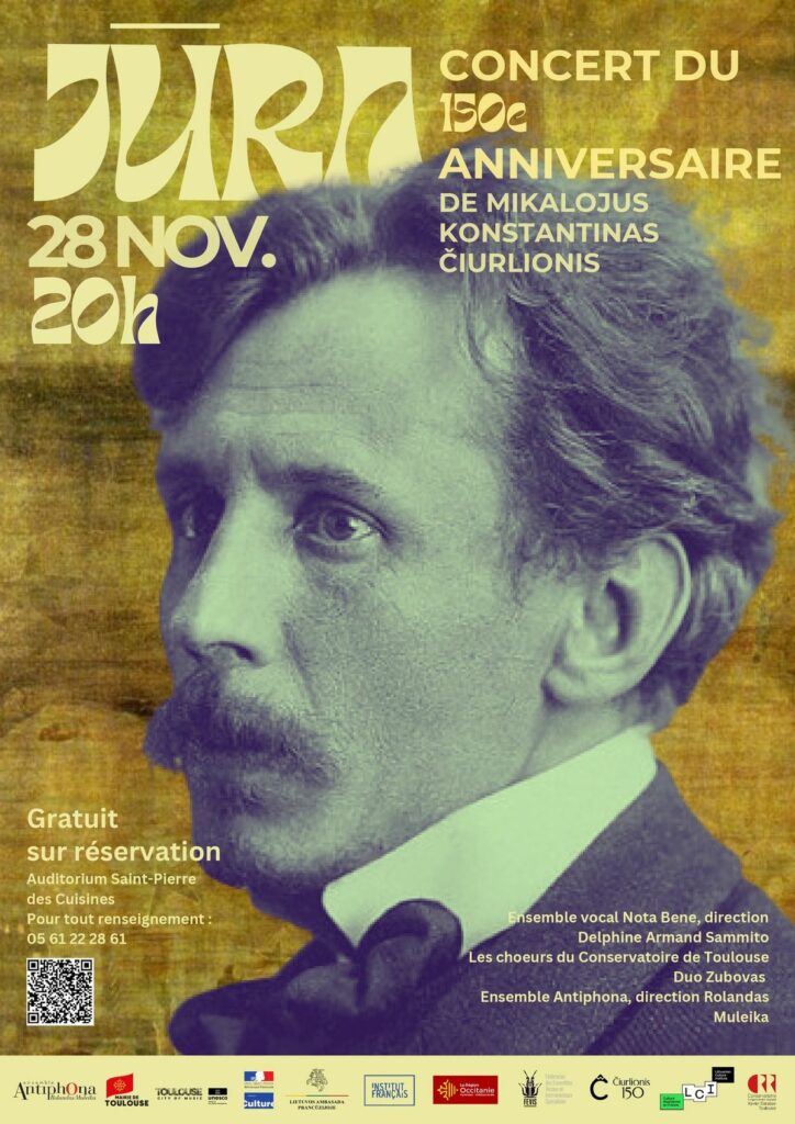 À l’occasion du 150ᵉ anniversaire de la naissance de Mikalojus Konstantinas Čiurlionis, compositeur et peintre emblématique de la culture lituanienne, un concert exceptionnel lui est dédié le vendredi 28 novembre à 20h à l’Auditorium Saint-Pierre des Cuisines.