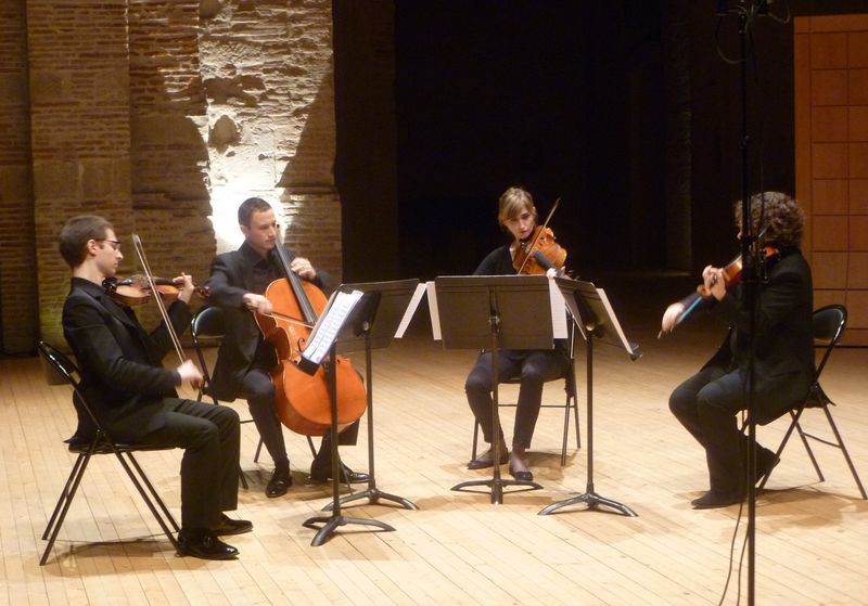 Certes, le quatuor à cordes en fa majeur op. 18 n° 1, qui ouvre le concert, ne peut être considéré comme une véritable rareté. Ce premier d’une géniale série de seize n’est toutefois pas le plus souvent présenté. La partition, divisée en quatre sections bien individualisées, ne renie pas l’héritage du bon Papa Haydn. Et c’est bien ainsi que les jeunes musiciens, tous membres de l’Orchestre national du Capitole, l’abordent ce soir-là. Olivier Amiel et David Benetah, violons, sont déjà des habitués de ces belles soirées de musique de chambre. L’altiste Maïlyss Caïn et le violoncelliste Thomas Dazan, qui apparaissent dans ce cadre pour la première fois, se fondent parfaitement dans cet instrument si particulier à seize cordes que représente le quatuor. Leurs sonorités charnues complètent harmonieusement, dans un bel équilibre, la finesse des violons. L’Allegro con brio donne le ton. Celui de la légèreté aimable dans une variété d’expressions, de couleurs et de rythmes qui réjouissent l’esprit. Le poignant Adagio affettuoso ed appassionato suspend le temps, alors que le jeu et même l’humour animent le Scherzo. Un final de joie et de fête conclut l’œuvre sur un large sourire.