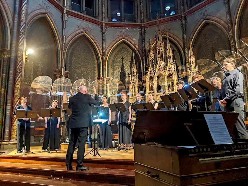 Dans le cadre des Quartiers d’Été du festival Toulouse les Orgues 2024, le Chœur de Chambre Les éléments présentait, le 7 août dernier à l’église du Gésu, son programme « Au-delà des cimes ». Sous la direction de son fondateur Joël Suhubiette, les chanteurs de ce célèbre et très bel ensemble vocal sont rejoints, ce soir-là, par Yves Rechsteiner, le Directeur artistiques du festival, présent aussi bien à la tribune du grand orgue Cavaillé-Coll du Gésu qu’au clavier de l’harmonium.