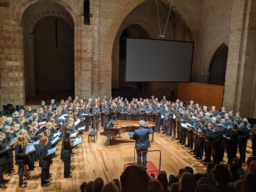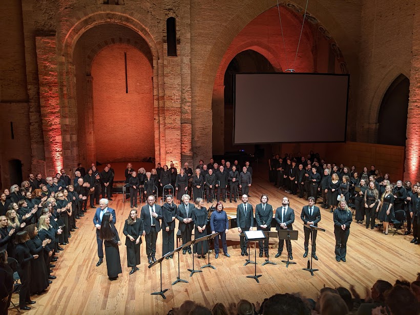 Deux extraits de la messe pour chœur a capella de Čiurlionis, « Kyrie et Gloria » sont ensuite chantés avec ferveur par le Chœur Adulte et l’Ensemble vocal du Conservatoire à Rayonnement Régional dirigés par Delphine Armand Sammito.