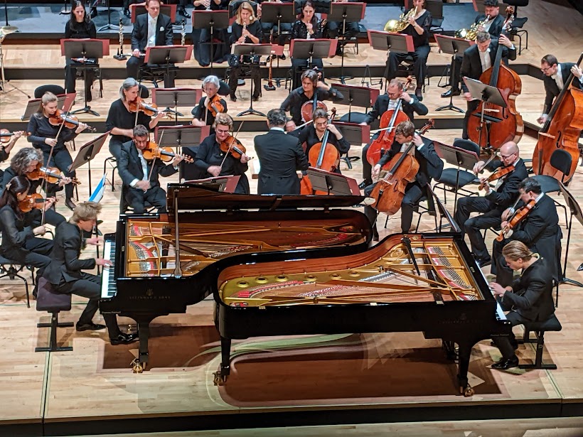 Le lundi 24 novembre 2025, à la Halle aux Grains, la brillante 40ème saison des Grands Interprètes recevait pour la première fois l’une des plus prestigieuses phalanges symphoniques d’Europe, sous la direction du chef qui a été le directeur musical de l’Orchestre national du Capitole de Toulouse de 2008 à 2022. Ce grand moment bénéficiait en outre de la participation de deux frères parmi les duos de piano les plus recherchés de notre époque : Lucas et Arthur Jussen.
