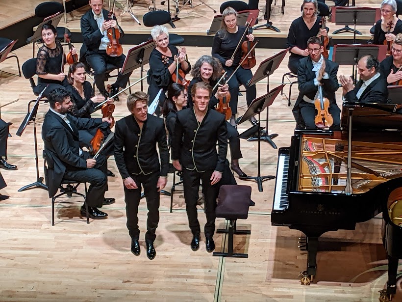 La partition concertante de cette soirée ménage un réjouissant contraste de caractère. Le Concerto pour deux pianos et orchestre de Francis Poulenc amène sur scène deux jeunes musiciens, deux frères pianistes, Arthur et Lucas Jussen, natifs d’Hilversum, qui ont notamment rencontré et suivi des cours auprès de la pianiste portugaise Maria João Pires. Si l’œuvre musicale en général de Francis Poulenc reste bien caractérisée par la célèbre formule de Claude Rostand, « moine et voyou », le Concerto présenté ce soir-là illustre nettement la face « voyou » !