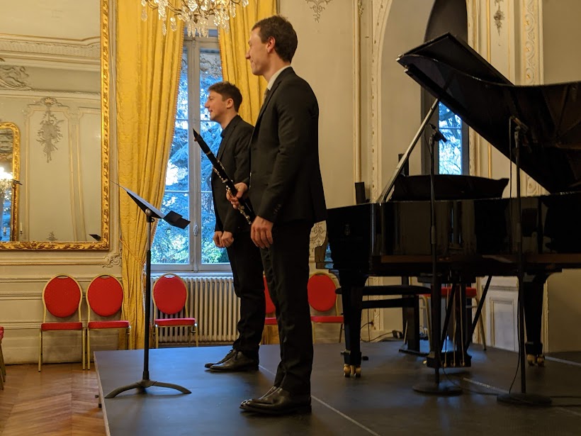 Francis Poulenc ouvre le bal avec sa brillante Sonate pour clarinette et piano. Qualifié de « moine et voyou » par le musicologue Claude Rostand, le compositeur témoigne ici surtout de son côté « voyou » ! Le clarinettiste Lilian Lefebvre brille ici de tous ses feux. La beauté du son, le style, le choix des phrasés, des nuances font merveille. Le pianiste Vincent Martinet ne se contente pas d’accompagner son complice. Il dialogue avec lui et le soutient avec musicalité.