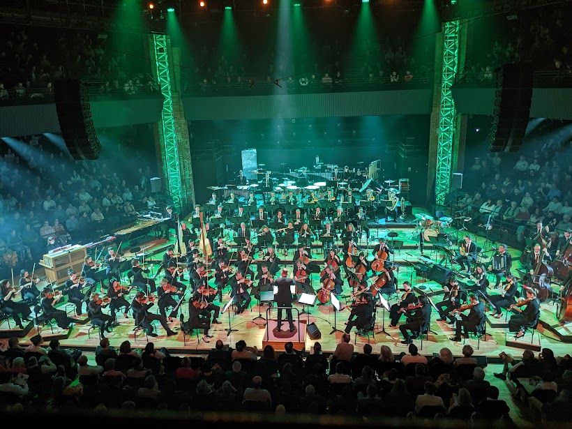 Soulignons le soin apporté à la présentation visuelle de la soirée. Les lumières s’adaptent parfaitement aux thèmes évoqués par chaque partition. Ainsi en est-il des deux premières. Pour la BO du film de 1938 de Michael Curtiz et William Keighley, Les Aventures de Robin des bois, signée Erich Wolfgang Korngold, l’éclairage se « verdit », à l’image du costume porté par Errol Flynn, le héros du film. Quant à la partition de John Barry pour Out of Africa, de Sydney Pollack (1985), le rouge s’impose.