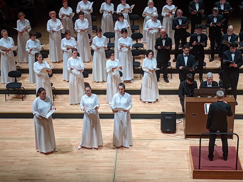L’ensemble retrouve ses racines dans la série de chants basques qui occupe la troisième partie de ce concert. C’est un traditionnel au titre impératif « Hator hator » (Viens, viens) qui ouvre la séquence en associant au grand chœur un trio de chanteuse. Alternant avec un autre traditionnel, « Oï Bethleem« , deux pièces de compositeurs basques, Gabriel Olaizola et Bartholomé de Ercilia sont abordées avec deux solistes : la mezzo-soprano Anabel Aldalur et le ténor Javier Puente. Gageons que la prononciation des textes est une référence !