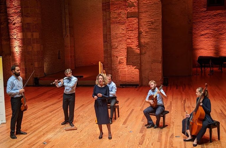 A la suite des interventions attendues du Président des Arts Renaissants, Claude Scavazza, et de son Directeur artistique, Jean-Marc Andrieu, les musiciens invités n’ont pas caché leur joie de se retrouver à Toulouse, dans cet auditorium, sept ans après leur première venue. Fondé en 2015, l’ensemble The Curious Bards réunit cinq instrumentistes amoureux des musiques traditionnelles du monde gaélique et celte : Alix Boivert, violon baroque et direction, Sarah Van Oudenhove, viole de gambe, Jean-Christophe Morel, cistre irlandais, Louis Capeille, harpe triple, Bruno Harlé, flûtes. La mezzo-soprano Ilektra Platiopoulou se joint à eux pour explorer un programme musical intitulé Indiscrétion, d’une incroyable invention !