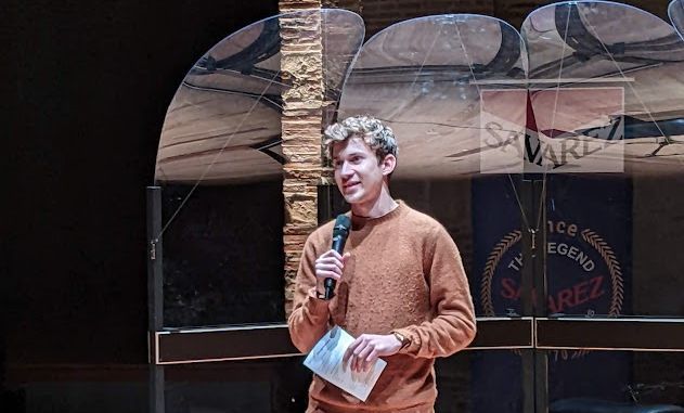 Néanmoins, suivant en cela la tradition maintenant bien établie de découverte de jeunes talents, la première partie de cette soirée du 1er décembre accueille la jeune guitariste Liewellyn Barré qui est actuellement en deuxième année du Cycle Préparatoire à l’Enseignement Supérieur (CPES). Elle apparaît sur la scène de l’auditorium en compagnie d’un adorable chien noir et blanc, apparemment mélomane, qui se couche sagement à ses pieds et semble la suivre et l’écouter religieusement.