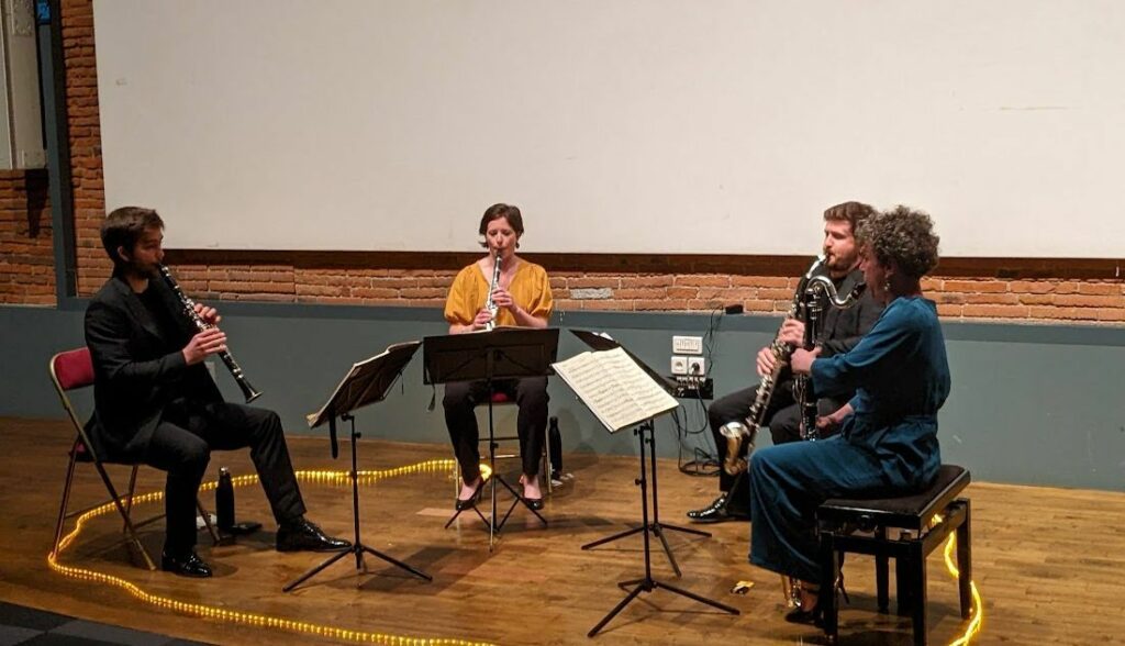 La Pause Musicale du 27 avril dernier accueillait dans la salle toulousaine du Sénéchal un ensemble instrumental d’exception. Le Quatuor Anches Hantées (saluons une fois encore la poésie du choix de ce nom de baptême !) offrait un résumé copieux du programme de son dernier enregistrement discographique, intitulé Fanny M.