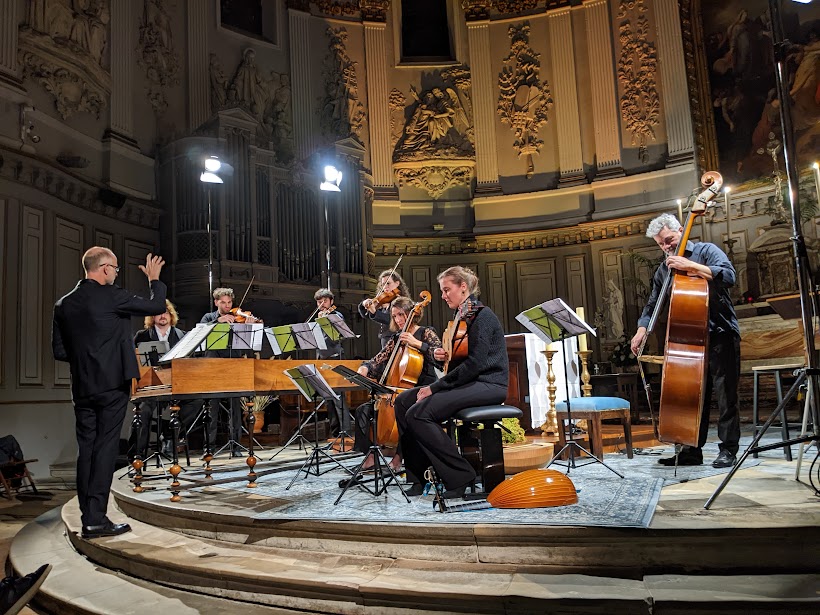 Florian Verhaegen et André Costa, violons, Aurélie Métivier, alto, Aude Walker-Viry, violoncelle, Albane Imbs, théorbe et guitare baroque, Nicola Janot, contrebasse, entourent le clavecin de Franck-Emmanuel Comte. Le mandoliniste Vincent Beer-Demander se joint à eux en fonction des œuvres jouées.