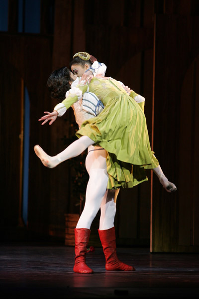 Après « Roméo et Juliette », c’est au tour de « La Mégère Apprivoisée » d’entrer au répertoire du Ballet du Capitole. Shakespeare et John Cranko à nouveau réunis, mais cette fois-ci dans un registre bien différent, le chorégraphe renouant avec la tradition anglaise des ballets du temps de Noël. Il est toujours malaisé de chorégraphier une ouvre théâtrale mais, ici, John Cranko a su doser, dans un parfait équilibre, danse et pantomime. Cependant, il est incontestable que ce ballet est un ballet de solistes. En effet, la chorégraphie des ensembles, conventionnelle et somme toute assez banale, nous a paru éteindre la verve habituelle du corps de ballet. Restent les solistes ! Juliana Bastos, d’une blondeur inattendue, campe une Bianca pleine de charme avec de grands moments comme son pas de deux au bras de Vincent Gros (Lucentio) toujours aussi élégant et attentif à sa partenaire. Autour d’eux papillonnent un Minh Pham irrésistible de drôlerie en amoureux transi, roi de la maladresse et Davit Galstyan, dandy avant l’heure, qui nous prouve que, en plus de ses réelles qualités de danseur, il possède aussi un solide talent de comédien.