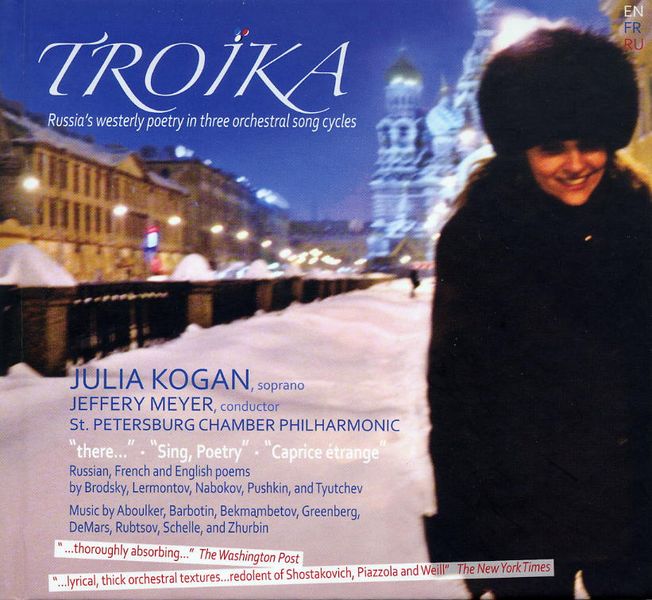 « Troïka » n’est autre que le titre du nouvel album CD publié à l’initiative de la soprano Julia Kogan et interprété par elle. Il s’agit là de la réalisation d’un projet musical et poétique particulièrement ambitieux. Le chiffre 3 semble jouer, pour la belle cantatrice, un rôle stratégique. D’origine ukrainienne, Julia Kogan a grandi aux Etats-Unis pour finalement venir s’installer en France, dans un petit village des Pyrénées.