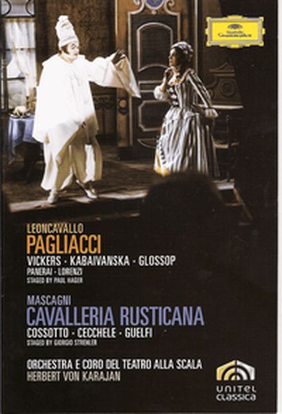 Quarante ans après son enregistrement (son et image), revoici cette soirée Cav/Pag, une soirée qui prend aujourd’hui une teinte nostalgique mariant avec émotion témoignage et hommage. Témoignage de quelques uns des plus grands monstres sacrés de l’opéra du 20ème siècle, hommage à ceux-là mêmes qui ont perpétué un certain âge d’or de l’art lyrique. Sortant incontestablement vainqueur de cette confrontation, Pagliacci est la plus intéressante des deux réalisations. La mise en scène de Paul Hager, les magnifiques décors et costumes de Georges Wakhevitch, Karajan lui-même derrière la caméra, tout en mouvements d’une étonnante modernité, alliant scènes de foule particulièrement animées et gros plans ravageurs, voilà le cadre de ce drame d’une incroyable violence. Dans le rôle titre, le ténor canadien Jon Vickers n’a toujours pas de rival, aujourd’hui encore. Le torrent de haine qu’il contient jusqu’à l’explosion finale est l’une des plus fascinantes leçons de théâtre lyrique que l’on connaisse. A ses côtés, la jeune Raina Kabaivanska est tout simplement parfaite de chant et de composition dramatique. Très belle prestation dans le rôle de Tonio du baryton anglais Peter Glossop.Reconnaissons très simplement que ni le niveau de la réalisation, ni celui de l’interprétation ne pouvaient mettre ce Cavalleria Rusticana au même plan.Fiorenza Cossotto, Gianfranco Cecchele et Giangiacomo Guelfi étaient d’honnêtes interprètes, sans plus. Et le pire est une réalisation mixant décors naturels et artificiels avec une naïveté, pour ne pas dire plus, et un manque d’imagination qui laissent sans voix.Deus ex machina de ces deux opéras, Herbert von Karajan signe ici, à la tête des phalanges milanaises, de véritables références musicales. Jamais plus on a entendu ces deux drames véristes avec une pareille chaleur d’accent, un pareil foisonnement de couleurs et une telle intensité dramatique. Somptueux ! Un avertissement tout de même, ces deux film sont doublés en play-back, et l’on ne peut vraiment pas dire que les chanteurs d’opéra égalaient alors leurs camarades de la variété dans cet exercice…