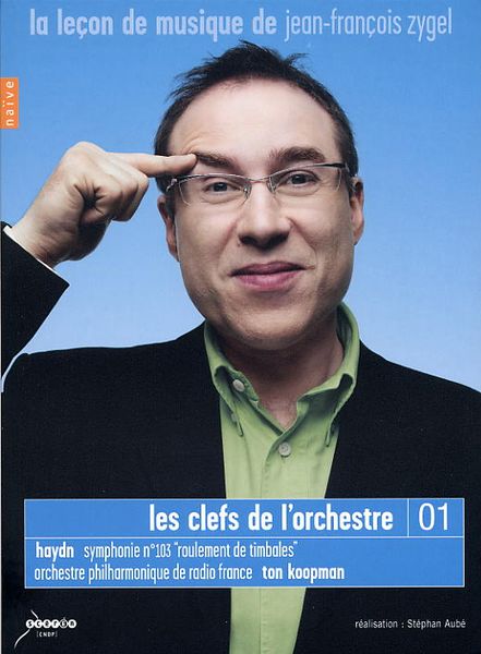 Jean-François Zygel poursuit son exploration pédagogique de la musique classique au bénéfice de tous ceux qui l’aiment sans savoir pourquoi ou qui voudraient bien l’aimer et savoir pourquoi. Après avoir présenté avec le talent et la vivacité qu’on lui connaît quelques uns des plus grands compositeurs de l’histoire, il s’intéresse ici à l’écriture orchestrale à travers une grande et belle symphonie classique, la 103ème dite « roulement de timbales » de Joseph Haydn. Il est accompagné pour cela par les membres de l’Orchestre Philharmonique de Radio France dirigés par un spécialiste de ce répertoire, le chef hollandais Ton Koopman. Ce DVD publié par Naïve distille une joie de tous les instants. Filmé et enregistré dans la salle Olivier Messiaen de Radio France devant un public de jeunes enfants, il donne au conférencier la parole et les moyens d’éclairer le néophyte et d’intéresser le mélomane. Par le recours à des images, à des comparaisons astucieuses, Jean-François Zygel fournit à l’auditeur des outils d’analyse et de compréhension simples et attractifs. Les musiciens, ainsi que leur chef Ton Koopman jouent le jeu et y prennent un plaisir évident. Même le mélomane averti y trouve son bonheur grâce à la qualité musicale de l’interprétation.
