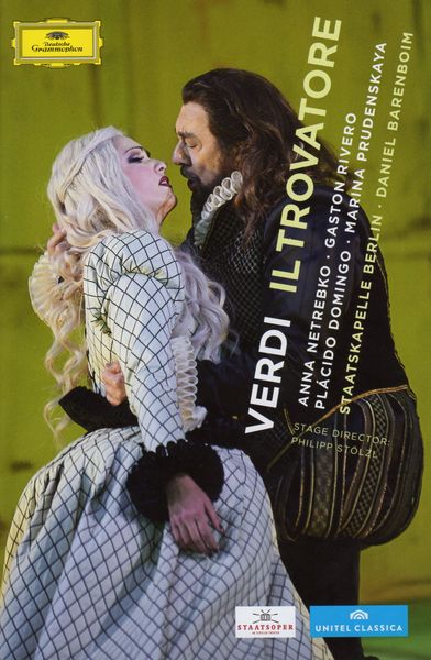 Même s’il ne s’agissait pas d’une nouvelle production, les représentations de ce Trovatore au Staatsoper im Schiller Theater à Berlin en décembre 2013 constituaient un évènement car, à cette occasion, trois artistes prestigieux faisaient leurs premiers pas dans cet ouvrage.Au premier rang de ceux-ci le chef d’orchestre Daniel Barenboim. O Bien sûr, la partition de Verdi interprétée par la Staatskapelle Berlin est un territoire plus que sécurisé, cette phalange comptant parmi les meilleures du monde. Le maître israélo-argentin s’en empare avec nervosité, alternant vivacité presque excessive et langueurs assez terrifiantes pour les interprètes. Une plus grande fréquentation de cet ouvrage devrait lui permettre de trouver ce juste milieu dans lequel artistes et partition trouveront ces points de fusion indispensables au spectacle lyrique. La mise en scène de Philipp Stölzl, largement « discutée » à Vienne en juin 2013, n’a pas échappé au même traitement à Berlin. Reconnaissons que le parcours scénique de ce Trovatore, entre cirque, grand guignol et carnaval, a de quoi dérouter. Entre commedia dell’arte et caricature, outrance et hystérie, le pitch est parfois nauséeux et l’on en vient à se demander comment les stars présentes sur le plateau sont parvenues à intégrer pareille vision. Bref.En parlant de stars, voici donc le premier De Luna de Placido Domingo. A 72 ans, force est de reconnaître la pérennité d’un métal vocal hors du commun et d’une implication dramatique intacte. Cela dit, est-ce suffisant pour affronter une écriture dans laquelle la flamme d’un bel canto très début 19ème siècle est encore présente ? Il balen del suo sorriso apporte une réponse négative. Tout comme à Salzbourg cet été, le souffle de cet immense artiste ne tient plus la formidable ligne de chant requise pour ce rôle. Anna Netrebko n’a pas ce genre de problème. A l’apogée de sa maturité vocale, elle aborde aujourd’hui les grands Verdi, leur confiant un timbre d’un velours rare, une ligne de chant exemplaire et une musicalité sans beaucoup d’équivalent, du moins aujourd’hui. Marina Prudenskaya campe une Azucena au timbre clair mais à l’émission vaillante dans une tessiture parfaitement homogène. Remplaçant Aleksanders Antonenko, malade, c’est le jeune américain Gaston Rivero, d’origine uruguayenne, qui enfile le costume et la perruque de rocker de Manrico, un trouvère sans grand relief mais qui ne démérite pas pour autant. La surprise vient d’une jeune basse roumaine de trente ans à peine, Adrian Sampetrean. Dans le rôle relativement sacrifié de Ferrando, il donne à entendre un timbre somptueux doublé d’une technique époustouflante et d’un legato inépuisable. Du coup sa grande scène du 1er acte devient l’un des sommets de cet enregistrement ! Troupier dans de grandes salles allemandes, nul doute qu’il ne prenne rapidement son envol vers d’autres horizons. Il le mérite largement. En même temps que les magnifiques chœurs de cette institution, saluons également tous les seconds rôles, en particulier l’Ines d’Anna Lapkovskaja.