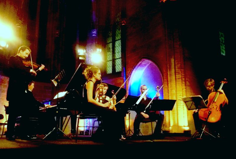 Les six artistes se retrouvent pour une seconde partie de soirée consacrée à une partition rarement inscrite aux programmes des manifestations de musique de chambre, le pourtant fameux Concert pour piano, violon et quatuor à cordes d’Ernest Chausson. Et pour cause. Il n’existe pas, à ma connaissance, d’autre pièce réunissant ces instruments-là. Visiblement heureux de se retrouver pour une telle œuvre, les jeunes interprètes hissent la grand voile et font souffler le vent du large. A la suite d’un premier mouvement dont le titre, Décidé, ne saurait être mieux illustré, le balancement de la tendre Sicilienne constitué un havre de finesse. La douleur qu’exprime avec pudeur le troisième volet, Grave, confère au Finale Très animé un relief saisissant. Les six musiciens mettent littéralement le feu à la partition dans ce volet éblouissant dans lequel plus que jamais, les deux instruments solistes, le violon de Guillaume Chilemme et le piano de Nathanaël Gouin-Mossé, établissent un dialogue véritablement concertant avec le Quatuor Voce promu au rang d’orchestre symphonique.