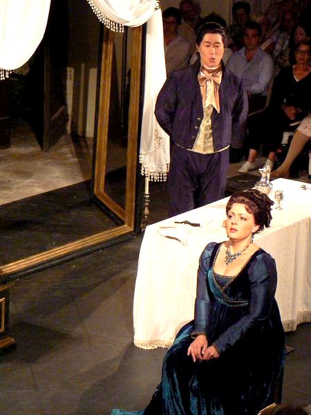 Du célèbre lieu cher à Sviatoslav Richter au plus chic des festivals anglais, le Festival de la Vézère est comme un écho très original. En effet, une fois pris votre pique-nique dans le magnifique parc du Château du Saillant, vous accédez directement à une immense grange pouvant contenir 400 spectateurs. C’est dans ce lieu improbable que se déroulent des représentations d’opéras d’un genre tout particulier. Pas d’orchestre mais un piano pour seul accompagnement musical, une scène d’une quinzaine de mètres carrés et, tout autour, le public. Au début, surtout lorsque l’on sort des Chorégies d’Orange, le choc est violent et le doute s’installe. Puis, la lumière s’éteint et le miracle s’accomplit. C’est la compagnie Diva Opera, principale troupe d’opéra de chambre anglaise, qui est à la manœuvre sous la direction musicale de Bryan Evans au piano. Des chanteurs, parfois très jeunes, d’autres confirmés, dans des mises en scène « forcément » inventives, vont nous faire vivre l’émotion lyrique à l’état pur. Inutile pour eux ici d’estomper la distance par un « surjeu » dramatique, l’extrême proximité d’avec le public leur laisse libre cours à l’engagement scénique le plus fin pouvant aller jusqu’à l’interpellation du spectateur.