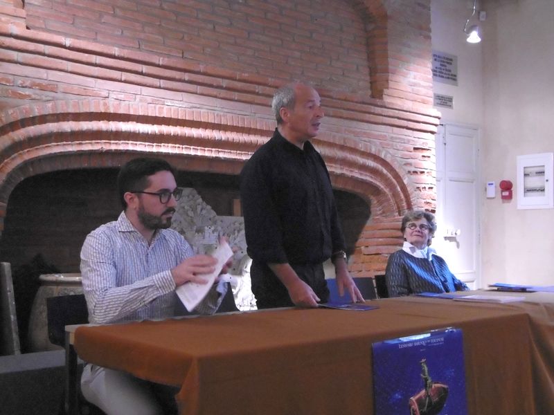 La présentation de cette 11ème édition/10ème anniversaire par Michel Brun à l’hôtel Dumay. Il est entouré de Marie-France Maury, Présidente de l’association et de Charlie Mivielle, administrateur – Photo Classictoulouse –