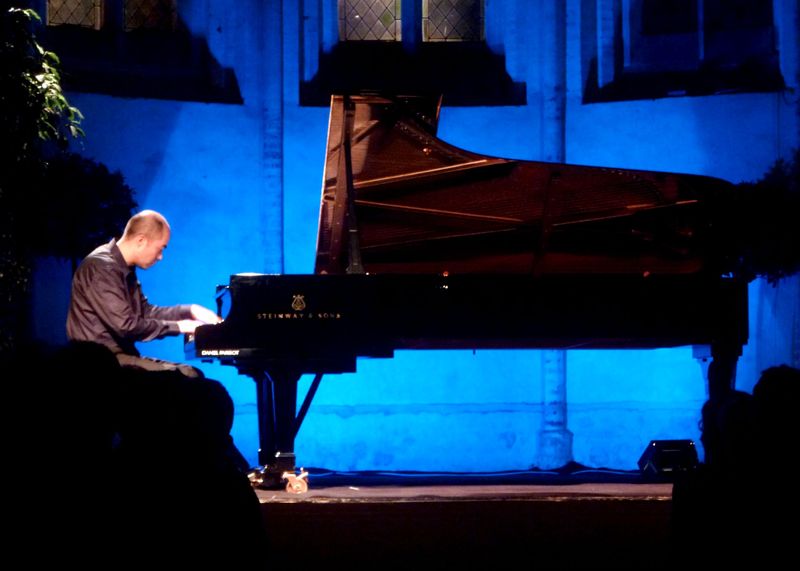 Le pianiste américain Sean Botkin pendant son récital Rachmaninoff dans le cloître des Jacobins (Photo Classictoulouse)