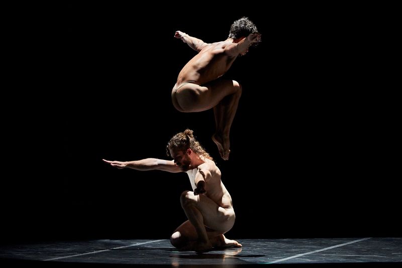 La soirée débute avec El cruce sobre el Niagara. Sur une musique d’Olivier Messiaen, celle que l’on peut clairement nommer leader de la modernité en matière de danse hispano-américaine : Marianela Boan, chorégraphie en duo masculin d’une intensité bouleversante. Réclamant une souplesse en même temps qu’une force incroyables, avec des équilibres au ralenti vertigineux, cette pièce met en présence Raul Reinoso et Julio Léon. Par l’exceptionnelle puissance que dégagent ces deux danseurs à la présence très sculpturale, par l’intense et ambigüe sensualité qui émane de leur corps à corps, ce ballet, créé en 1987, restera l’acmé de la soirée.