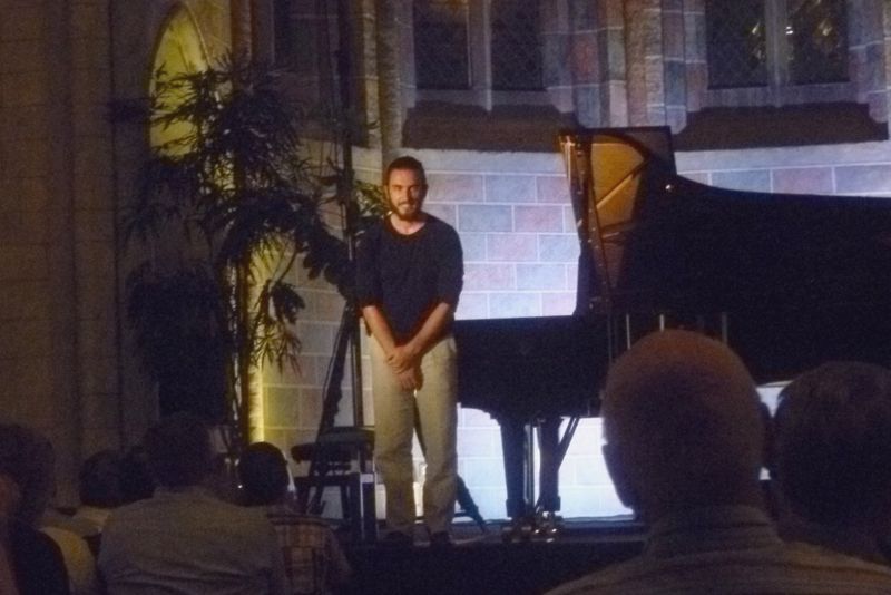 Le jeune pianiste suisse Teo Gheorghiu dans la pénombre du cloître des Jacobins