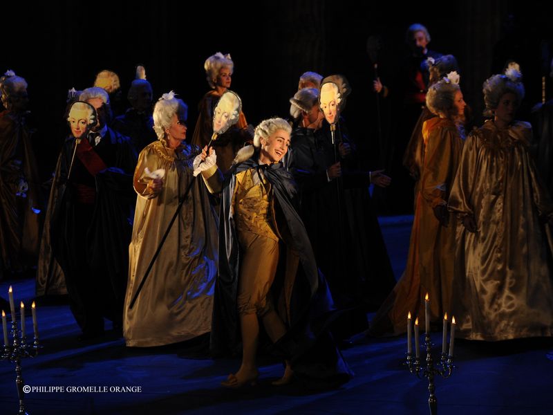 Cela dit et tout en tenant compte de ces circonstances un brin déstabilisantes, que dire sur ce spectacle. Avant toute chose, qu’il vient d’offrir à la soprano belge Anne-Catherine Gillet, un magistral triomphe. Soyons clair, LE triomphe de la soirée. Et c’est là que tout se complique car Anne-Catherine Gillet chante… Oscar, un second rôle, magnifique certes, mais tout de même, juste trois courtes scènes de quelques minutes à peine chacune. Cela dit, elles ont suffi à nous faire entendre un Oscar d’une virtuosité et d’une musicalité à tomber par terre. La voix a pris de l’ampleur (attention au contrôle du vibrato…) et s’achemine aujourd’hui vers d’autres rôles : Traviata et Rigoletto la saison prochaine. Toujours très à l’aise sur scène, Anne-Catherine Gillet a littéralement brûlé les planches de ce Bal masqué. Ovation au salut final. Ce succès, elle a dû tout de même le partager avec Alain Altinoglu qui, malgré les circonstances, a su tenir ferme l’Orchestre de Bordeaux-Aquitaine ainsi que les Chœurs de régions et nous faire entendre un Bal masqué d’une belle rigueur de style et profondément émouvant.
