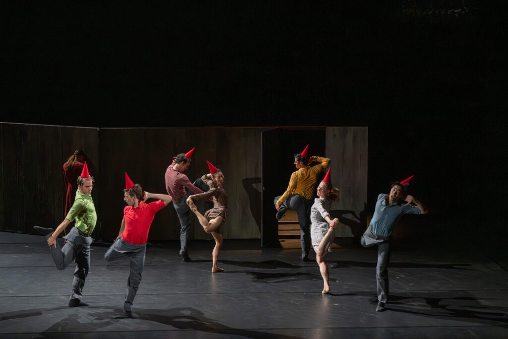 La première œuvre chorégraphique était signée du chorégraphe suédois John Singer. Le Boléro de Ravel et la musique d’Arvo Pärt servent d’écrin musical à une chorégraphie pleine d’une énergie fulgurante, qui, sur un rythme effréné, illustre une citation de Socrate, « les plus grands bienfaits nous viennent de la folie », texte à l’origine de l’inspiration de l’œuvre. Le rideau s’ouvre sur une scène occupée par un long mur gris, mur qui sera le pivot du ballet. Les danseurs, en effet, s’y accrocheront, pousseront des portes, le renverseront, s’y appuieront.