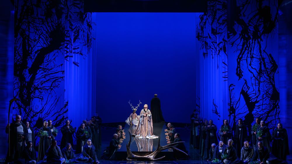 Le Théâtre du Capitole reprend légitimement sa production créée en septembre 2019 et confiée pour la mise en scène à Anne Delbée. Celle-ci fait intervenir dans l’histoire le Cerf Blanc cher aux mythologies celtes, véritable messager d’un autre monde. A vrai dire, si l’on excepte les magnifiques lumières de Vinicio Cheli, cette production n’apporte pas grande nouveauté à l’ouvrage et même, parfois, propose des visions qui rendent complexe la lecture de cette grande dame du théâtre français. Mais tout le monde est bien d’accord, Norma est, avant toute chose, un véritable festin de mélodies sublimes, d’airs, de duos, de trios, d’ensembles se situant sur des sommets inviolés de la création lyrique.